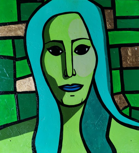 tríptico, acrílico y foil sobre composite de madera, 65 x 165 cm.